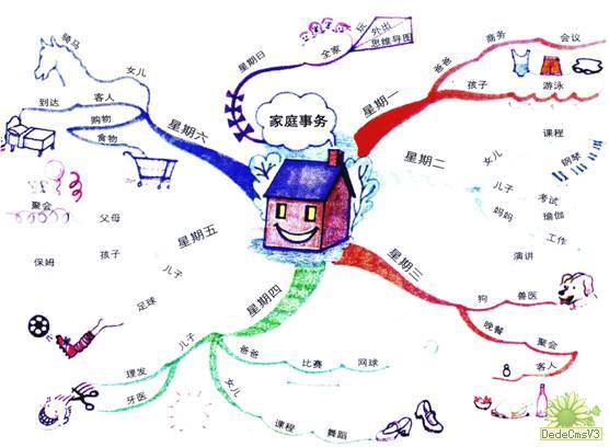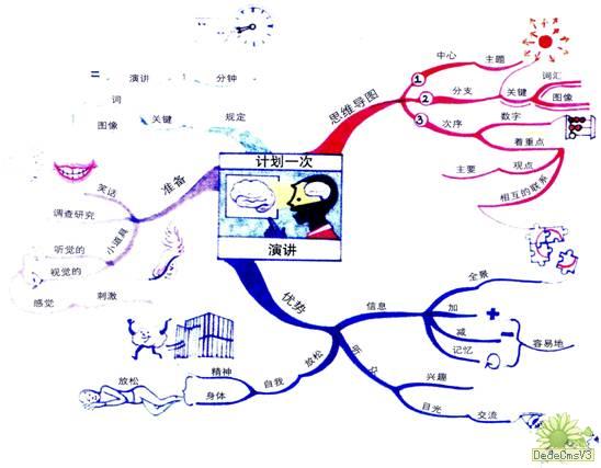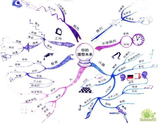 目 录 第一章 思维导图概述 什么是思维导图? 你需要用哪些工具来绘制思维导图? 思维导图如何帮助你? 第二章 绘制一幅思维导图 发现你与生俱来的绘制思维导图的能力 想象和联想的游戏 绘制思维导图的七个步骤 绘制你的第一幅思维导图 第三章 使用思维导图,让你每天的生活更加成功 沟通与演讲的思维导图 家庭事务计划的思维导图 说服别人与谈判的思维导图 计划一个浪漫周末的思维导图 打电话的思维导图 开始一项新的商务风险投资的思维导图 购物的思维导图 把一本书变成一张簿纸的思维导图 计算机思维导图 第四章 用思维导图最大限度地开发你的创造力 用思维导图发掘你惊人的创造力 线性笔记及其问题 你头脑中的万维网及其创造力 伟大的天才和记笔记的方法 第五章 用思维导图描绘你的理想未来 创造你的理想未来 思维导图与未来 梦想成真 (阅读正文请操作本框架右边的下拉条) 第一章 思维导图概述 [返回目录] 1.什么是思维导图? 思维导图是终极的组织性思维工具。而且,它用起来非常简单! 下页这张最基本的思维导图是“今天的计划”。从图中心发散出来的每个分支代表今天需要做的不同的事情,例如叫水暖工,或去百货商店购物。 要把信息“放进”你的大脑,或是把信息从你的大脑中“取出”,思维导图是最简单的方法—它是一种创造性的和有效的记笔记的方法,能够用文字将你的想法“画出来”。 所有的思维导图都有一些共同之处。它们都使用颜色,都有从中心发散出来的自然结构,都使用线条、符号、词汇和图像,都遵循一套简单、基本、自然、易被大脑接受的规则。使用思维导图,可以把一长串枯燥的信息变成彩色的、容易记忆的、有高度组织性的图,它与我们大脑处理事物的自然方式相吻合。 你可以把思维导图和一幅城市地图相比较。你的思维导图的中心就像城市的中心,它代表你最重要的思想;从城市中心发散出来的主要街道代表你思维过程中的主要想法;二级街道或分支街道代表你次一级的想法,依此类推。特殊的图像或形状代表你的兴趣点或特别有趣的想法。 就像一幅街道图一样,一幅思维导图将: ○ 绘出一个大的主题或领域的全景图。 ○ 使你对行走路线作出计划或选择,让你知道你正往何处去或你去过哪里。 ○ 把大量数据集中到一起。 ○ 使你能够看到新的、富有创造性的解决途径,从而有助于你解决问题。 ○ 使你乐于看它、读它、思考它并记住它。 思维导图也是极佳的记忆路线图,这种把事实与思想组织到一起的方式,与你大脑自然的工作方式相符。这意味着你能够更容易地记住,过后也更容易回忆起来,这种方法比传统记笔记的方法更值得信赖。 2.你需要用哪些工具来绘制思维导图? 由于思维导图是如此简单、自然,因此你的“思维导一图处方”中只有数量很少的几种“成分”: ● 没有画上线条的空白纸张 ● 彩色水笔和铅笔 ● 你的大脑 ● 你的想象! 3.思维导图如何帮助你? 思维导图能够在很多方面帮助你!这里只列出了一小部分! 思维导图能够帮助你: ◆ 表现出更多的创造力 ◆ 节省时间 ◆ 解决问题 ◆ 集中注意力 ◆ 对你的思想进行梳理并使它逐渐清晰 ◆ 以良好的成绩通过考试 ◆ 更好地记忆 ◆ 更高效、更快速地学习 ◆ 把学习变成“小菜一碟” ◆ 看到“全景” ◆ 制订计划 ◆ 与别人沟通 ◆ 生存! ◆ 节约纸张! 让我们把你的大脑和其中的知识比作一个图书馆。 想象一下,你的大脑是一个新建成的空空荡荡的图书馆,它等待着你把数据和信息以书、录像带、电影胶片、光盘以及计算机软盘等形式放人其中。 你是这个图书馆的首席管理员,你首先必须选择你想拥有多一些的馆藏还是少一些的馆藏。很自然你会选择多一些的馆藏。 然后你需要作出第二个选择:你是否要把信息变得有秩序。 假如你不想把信息变得有秩序,你只是简单地订购了一堆书和电子文献,然后将所有这些信息全都堆在图书馆里房间地板的中央!当有人来你的图书馆向你借某本书,或者想要找关于某个特定主题的信息时,你耸耸肩膀说:“都在这一堆里,希望你能够找到它—祝你好运!” 这个比喻描述了很多人头脑的状态! 他们的头脑,尽管他们可能—而且经常—储存有他们想要的信息,可是由于头脑中的信息全都处于无序状态,因此当他们需要某些信息时他们无法找到它。这种情况导致了挫败感,不愿意再接受或处理新的信息。也难怪如此,假如你以后永远也不会再找到你所接受的新信息,那么你为什么要接受它呢? 想象一下相反的状况,你有一座巨大的图书馆,里面装满了你想要知道的无数信息。在这座先进的图书馆里,决不会有任何信息胡乱地堆在地板上,一切都井然有序地放在你可以找到的地方。 除此之外,这座图书馆还拥有出色的数据检索和存取系统,使你能够找到你头脑中一闪而过的任何想法。 这是一个不可能实现的梦想吗?对你来说,它马上就会成为可能! 思维导图就是存在于你那神奇的大脑中的巨大图书馆里的出色的数据检索和存取系统。 思维导图帮助你学习、组织和储存你想要的所有信息,它以自然的方式对信息进行分类,使你能够很容易迅速得到你想要的一切(完美的记忆!)。 思维导图还有其他作用。你可能认为装进头脑里的信息越多,你的头脑就越拥挤不堪,从头脑中输出信息也就越困难。思