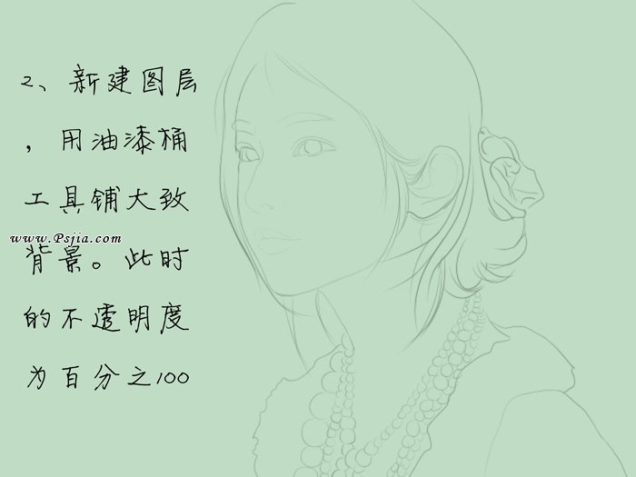 2、新建图层,用油漆桶工具铺大致的背景,此时的不透明度为100%。