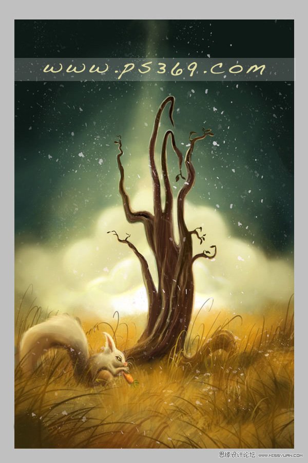 PS鼠绘荒原上的美丽月色