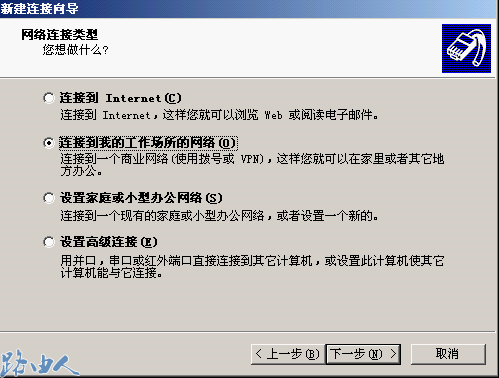 (3)再选择连接到我的工作场所的网络点击下一步;