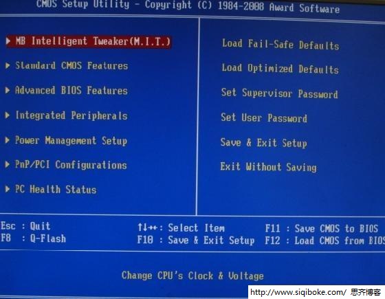在我们启动计算机时迅速按下键盘右下角的Del键,如果是笔记本的话则一般按下F2键,即可进入BIOS设置界面,一般的BIOS设置界面如下: