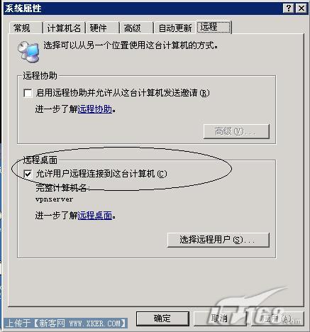 第三步:在远程标签中找到“远程桌面”,在“容许用户连接到这台计算机”前打上对勾后确定即可完成2003下远程桌面连接功能的启用。(如图3)