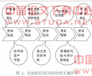 除了授信决策环节外,对贷前、贷中、贷后的全流程进行梳理,从授信发起、授信审批、授信发放、贷后管理、资产保全、授信收回各授信环节进行细分,实施前、中、后台相互分离、相互制约的改革,有效降低授信业务的操作风险。全流程信用风险管理的关键环节如图2所示。